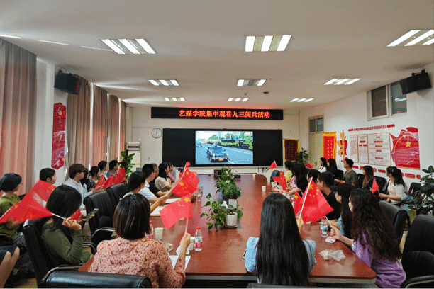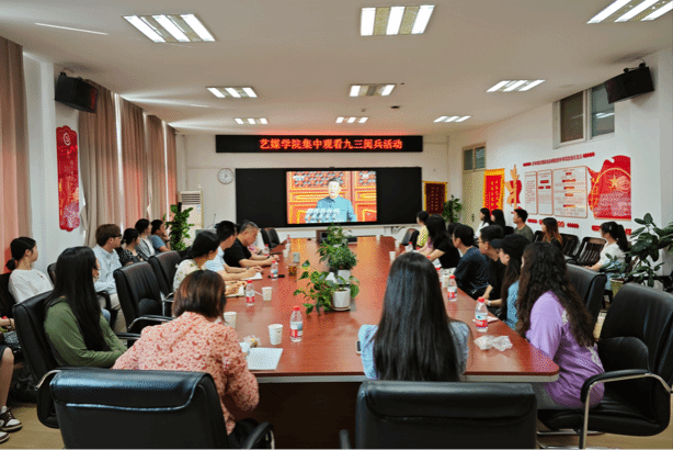 党委书记冷再心,副书记边建华,院直全体老师,学工组全体专兼职辅导员,组织学院全体师生集中观看了这场庄严而振奋人心的盛典。