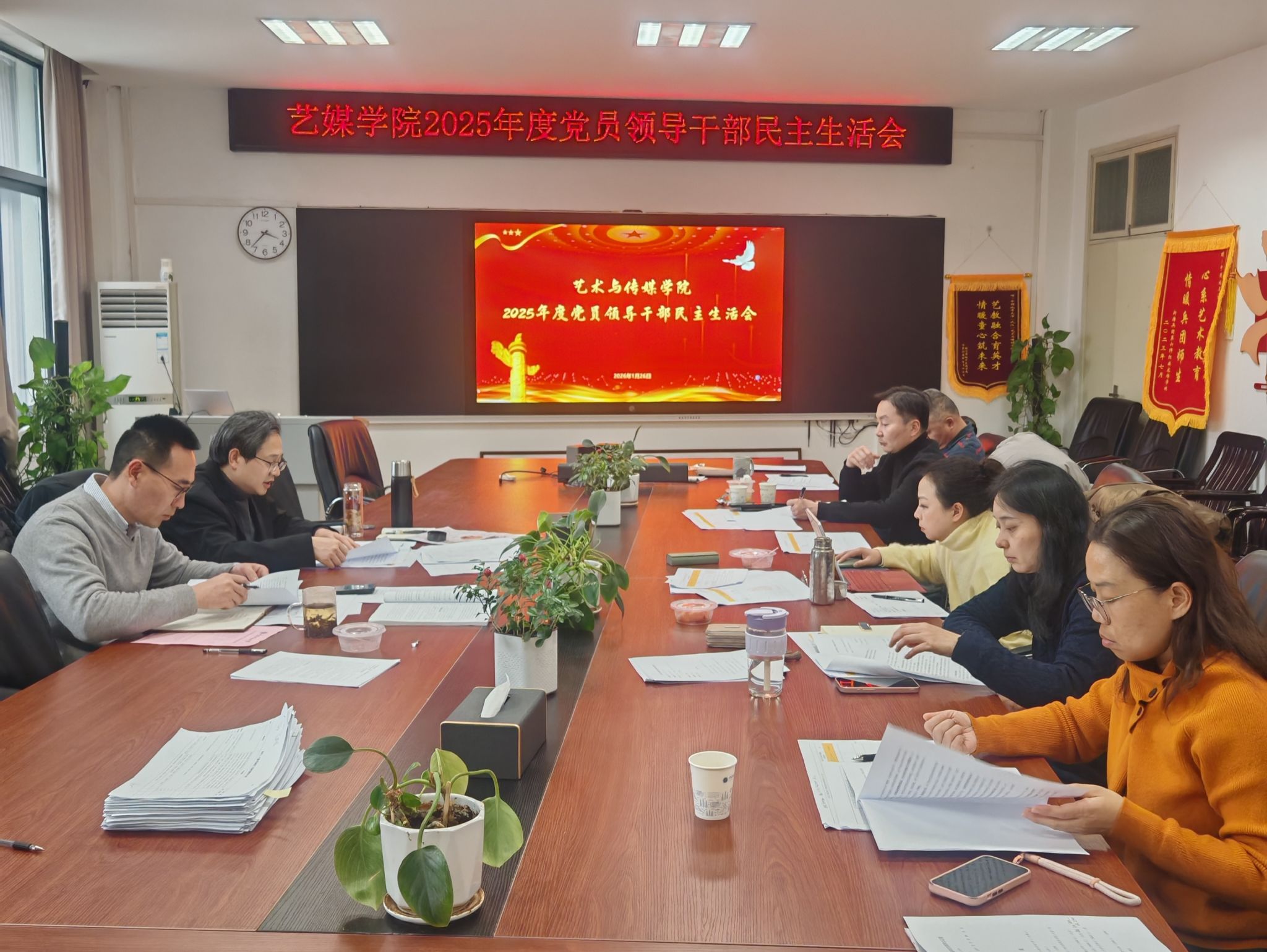 2025年度党员领导干部民主生活会在学院1209会议室召开,学院领导班子全体成员参加会议,会议由学院党委书记冷再心主持。