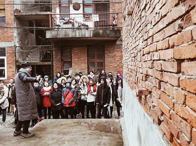 国际设计驱动创新(DXM)中心的师生,在武汉最冷的周末,冒着零度刺骨的北风,从早上八点半到晚上十点半,走进了武汉江夏区的金口镇并进行实地考察调研,这次项目是华中科技大学建筑与规划学院建筑系的赵逵教授与我院桂宇晖院长一起合作进行,赵逵教授这边负责金口老城区的建筑改造与设计,桂院长一方则负责改造后古镇的视觉形象与多媒体互动部分。