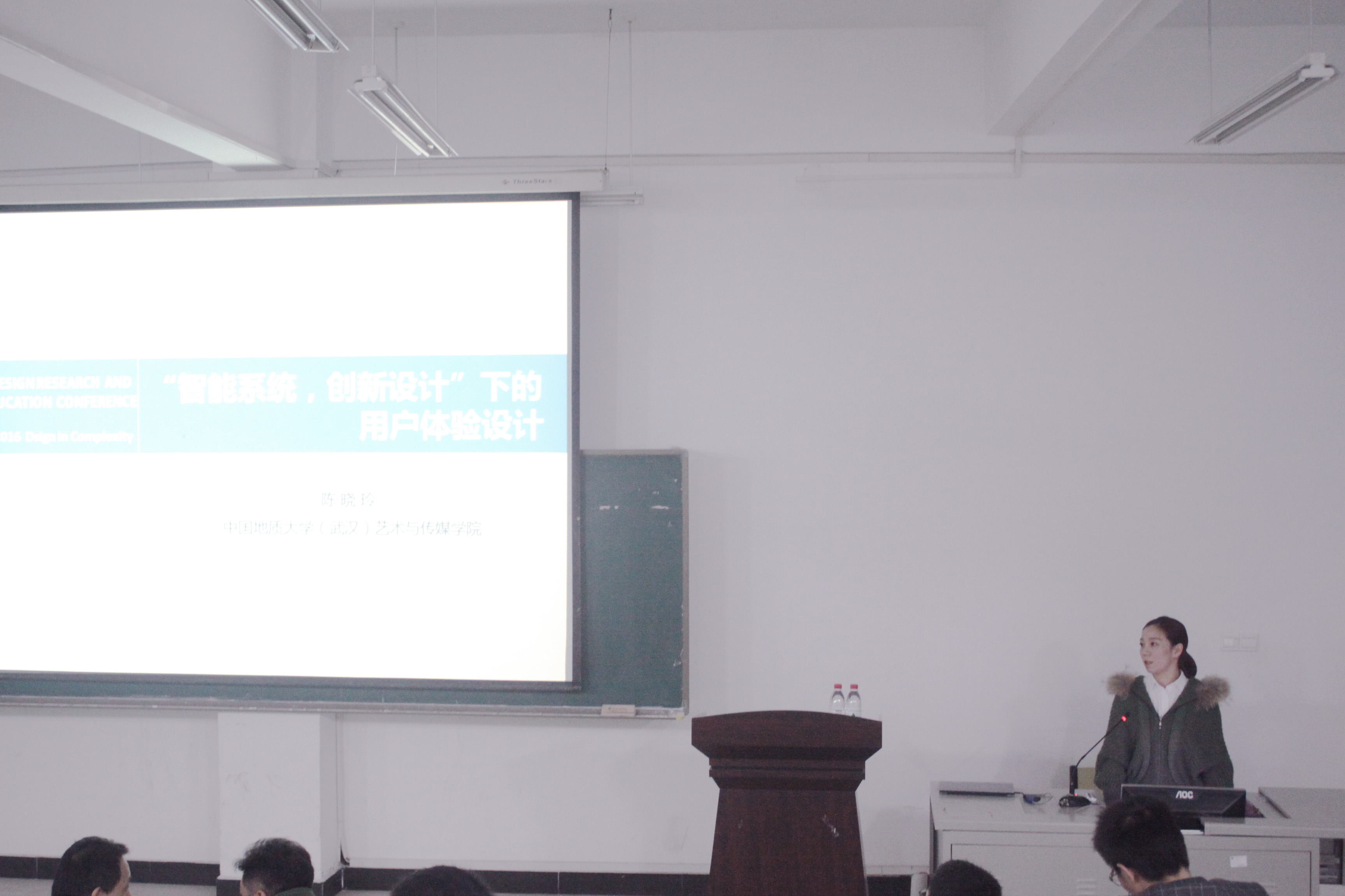 汇报开始,曾副院长首先向同学们介绍了“设计X复杂性(Design in Complexity)”主题学术报告会的过程。然后,借助一张张现场照片讲述了自己参会的情况。最后,曾副院长结合同济大学创意学院和我院的相似与差异之处分享了自己的收获,他指出作为一名老师应该提升科研能力,作为一名管理者应该配合院长管好本职工作,作为一名从事设计教育的工作者应当借力本校兄弟学院的优势学科凝练我院的专业特色。
