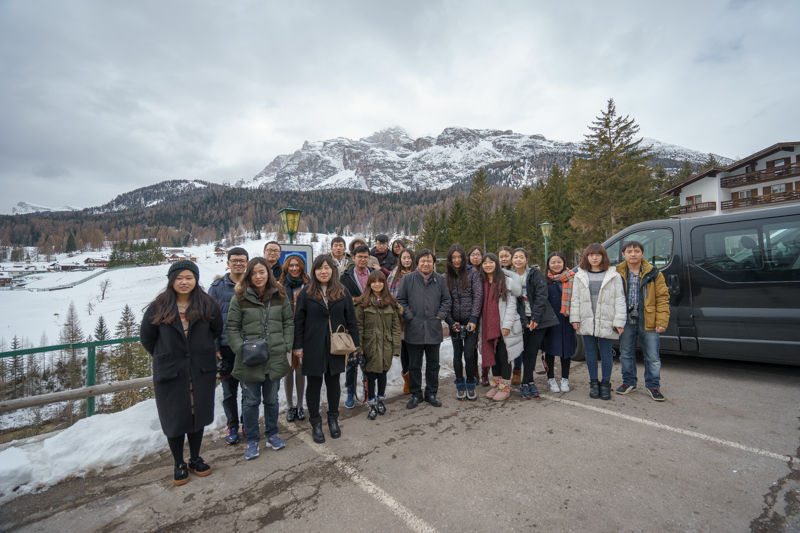 途中,领队老师马林向访学团介绍道:“多洛米蒂山脉位于意大利东北部,是意大利阿尔卑斯山脉北部东段的山群。山区风景秀丽,空气纯净,雪景更是堪称一绝,甚至连瑞士都要输它几分。”