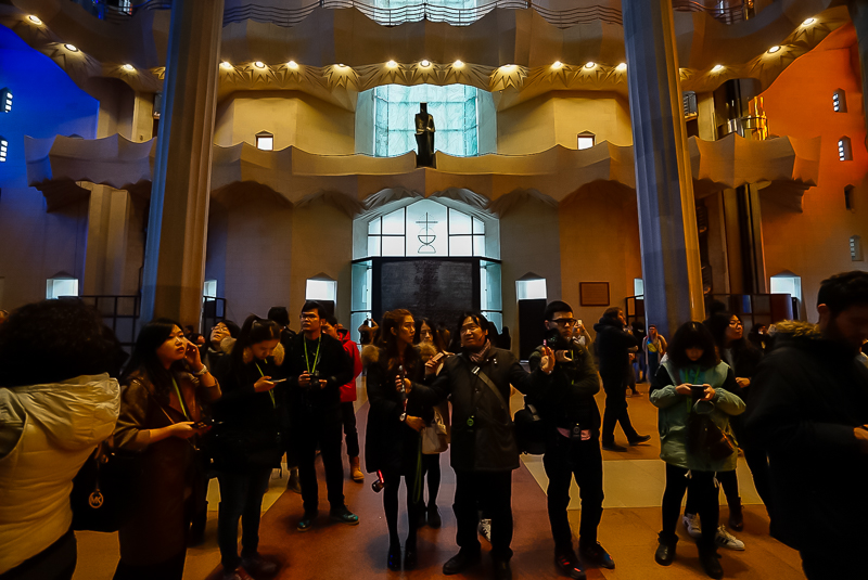 上午10点15分,访学团抵达圣家族教堂(圣家堂)。圣家族大教堂位于西班牙巴塞罗那,是一座罗马天主教大型教堂,由西班牙建筑师安东尼奥·高迪(1852-1926)设计。关于高迪,马林老师认为,能够在古人身上找到灵感的人,一定是有资格成为大师的人。高迪善于在古代建筑中寻找灵感,这才成就了今天的圣家族大教堂。此外,他还表示:“高迪是一个优秀的艺术家,他能够化用前人的精髓及加泰罗利亚的民主文化,并结合自然元素,创造出一种新的艺术形态,并将其为之所用。他和毕加索并称为西班牙两大巨匠,是改变新文化命运的转折点式的人物。而圣家族大教堂充分利用了哥特式建筑的基本结构,结合灵动的曲线,并巧妙的借鉴了梵蒂冈天使升天的群雕动感,以代替当时规整的建筑形态,这可以称得上是建筑史上的一次伟大创举”。