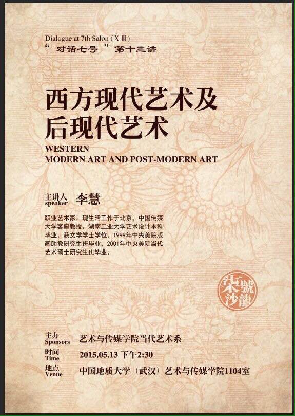 (记者姜玲)5月13日下午两点半,在好色tv 1104教室,中国传媒大学客座教授、职业艺术家李慧作了主题为“西方现代艺术及后现代艺术”的讲座。