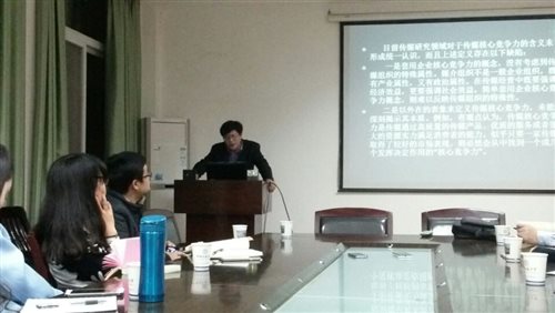 (张灵燕)应学院邀请,11月14日,湖南大学新闻传播与影视艺术学院的副院长、博士生导师向志强教授来我院进行学术交流,为2014级新闻传播学硕士研究生带来了一场关于媒介产业核心竞争力的学术盛宴。