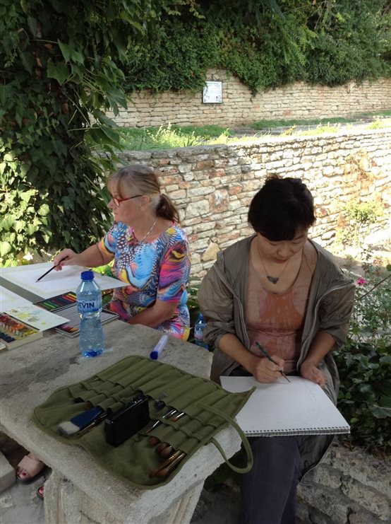 在画展开幕前,受邀艺术家在主办方的带领下参观了历届画展的场景,并上交自己的参展作品、资料等。在开幕前的10天里,池漪老师同来自世界各地的艺术家一起,共同走访了保加利亚的多座城市,参观了这些城市的博物馆、名胜古迹等。并在走访过程中进行写生创作。