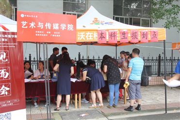 迎新活动由罗文旭老师总负责。罗文旭老师介绍,迎新活动主要以13级同学为主,分为两部分。一部分是体育馆后面的迎新点,登记新生入学信息、发新生证及一卡通等。另一部分是体育馆门前举牌子引导学院各专业新生入学的服务点。此外,与往年不同,今年学院还特意安排了家长见面会。