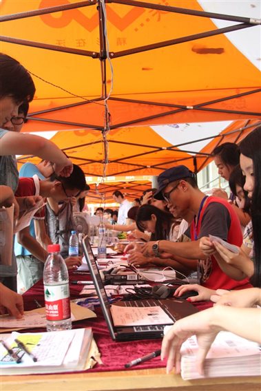 在西区体育馆展开迎新活动。据悉,为期两天的迎新活动每天分为3班不同的人员值班。第一天从早上8点30开始到晚上10点结束,第二天则是在晚上5点30结束。