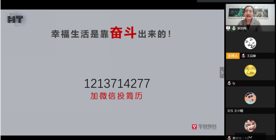 4月4日晚,我院第一期求职训练营之空中加油站——优秀校友在线就业分享会借助腾讯会议室顺利举行,华图教育福州分校教师项目经理兼师资总监郭洪梅、网易游戏特效师邢煜莹两位校友受邀做职场分享。学院党委副书记吴仁喜、视觉与媒体设计系徐莉老师以及学院40余名本科生和研究生参加在线分享会。