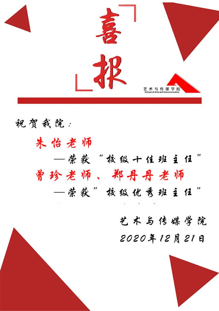 祝贺我院3位老师在“2020年全校‘十佳班主任’和‘优秀班主任’评选活动”中脱颖而出!
