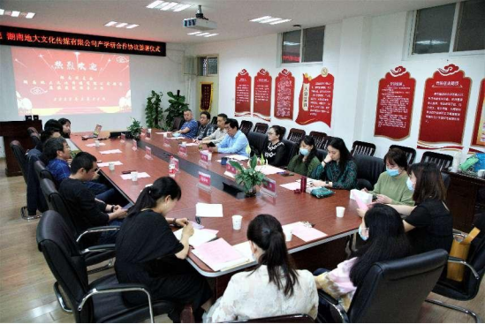 与湖南地大文化传媒有限公司合作基础良好,希望双方以协议为起点,学院发挥师生科研力量,企业发挥产业优势,共同落实落地,携手推进人才培养、文创推广、学术交流、产学研合作等事宜,力争实现校企合作、资源共享、互利共赢、共同发展的双赢局面。