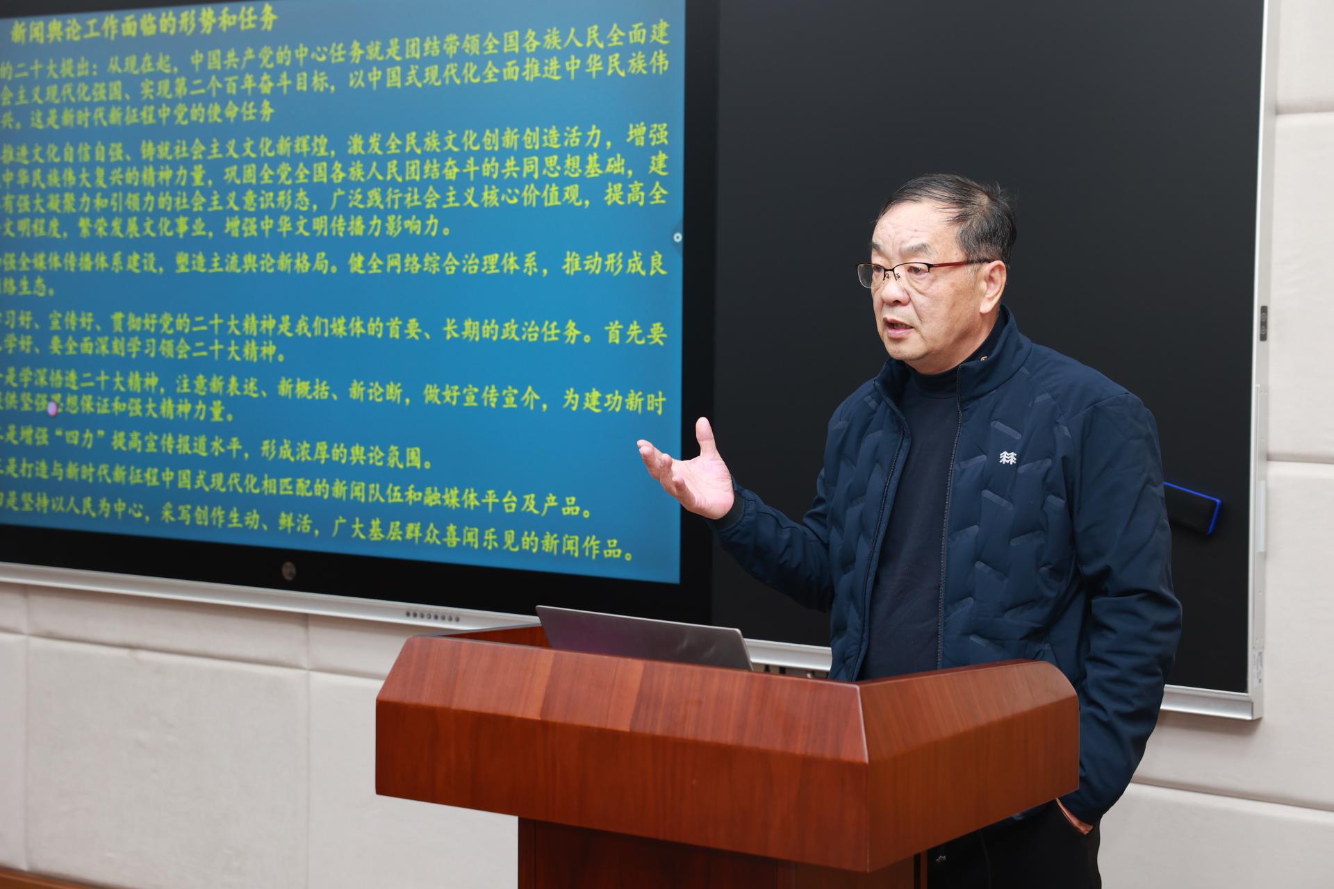 的邀请,中国作家协会全委会委员、中国自然资源作家协会主席、原中国国土资源报社社长陈国栋研究员,来校围绕新时代新闻舆论工作进行讲学。