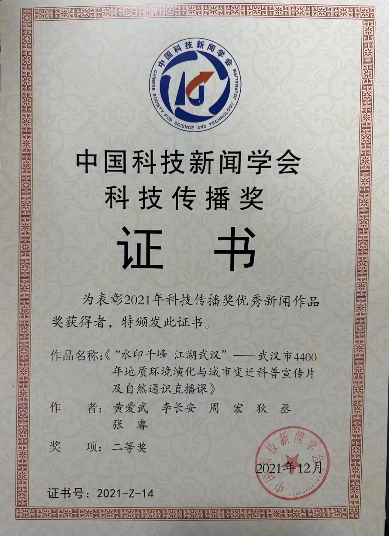 喜报!祝贺我院教师荣获“2021年科技传播奖优秀新闻作品奖”二等奖