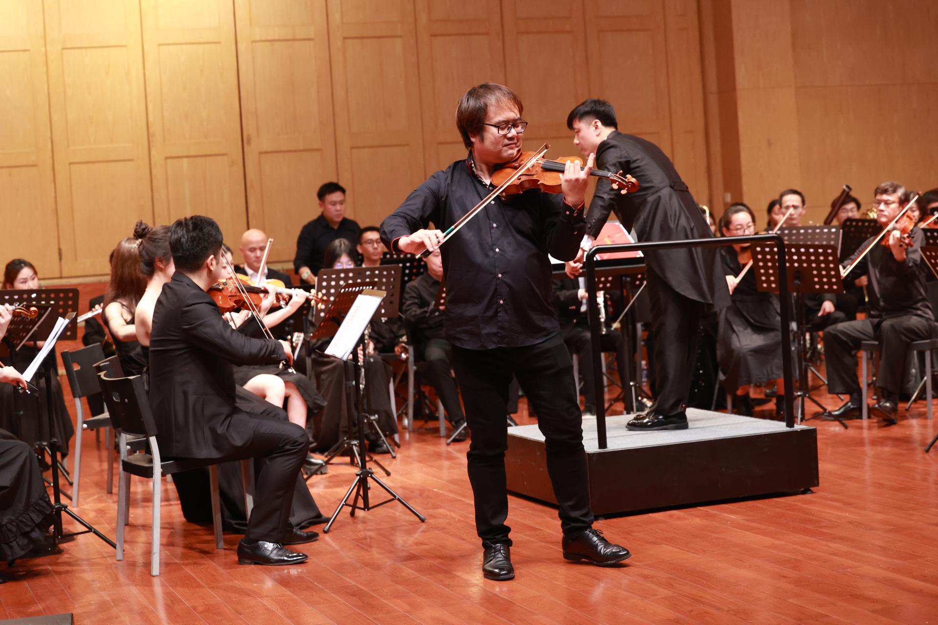 王凯平教授,压轴登台演奏了红色经典小提琴独奏曲《金色的炉台》。本曲在上世纪七十年代由著名小提琴作曲家陈钢根据歌曲《毛主席的光辉把金色的炉台照亮》改编。乐曲运用民族民间音乐元素,感情真挚、乐思巧妙,旋律富有激情。