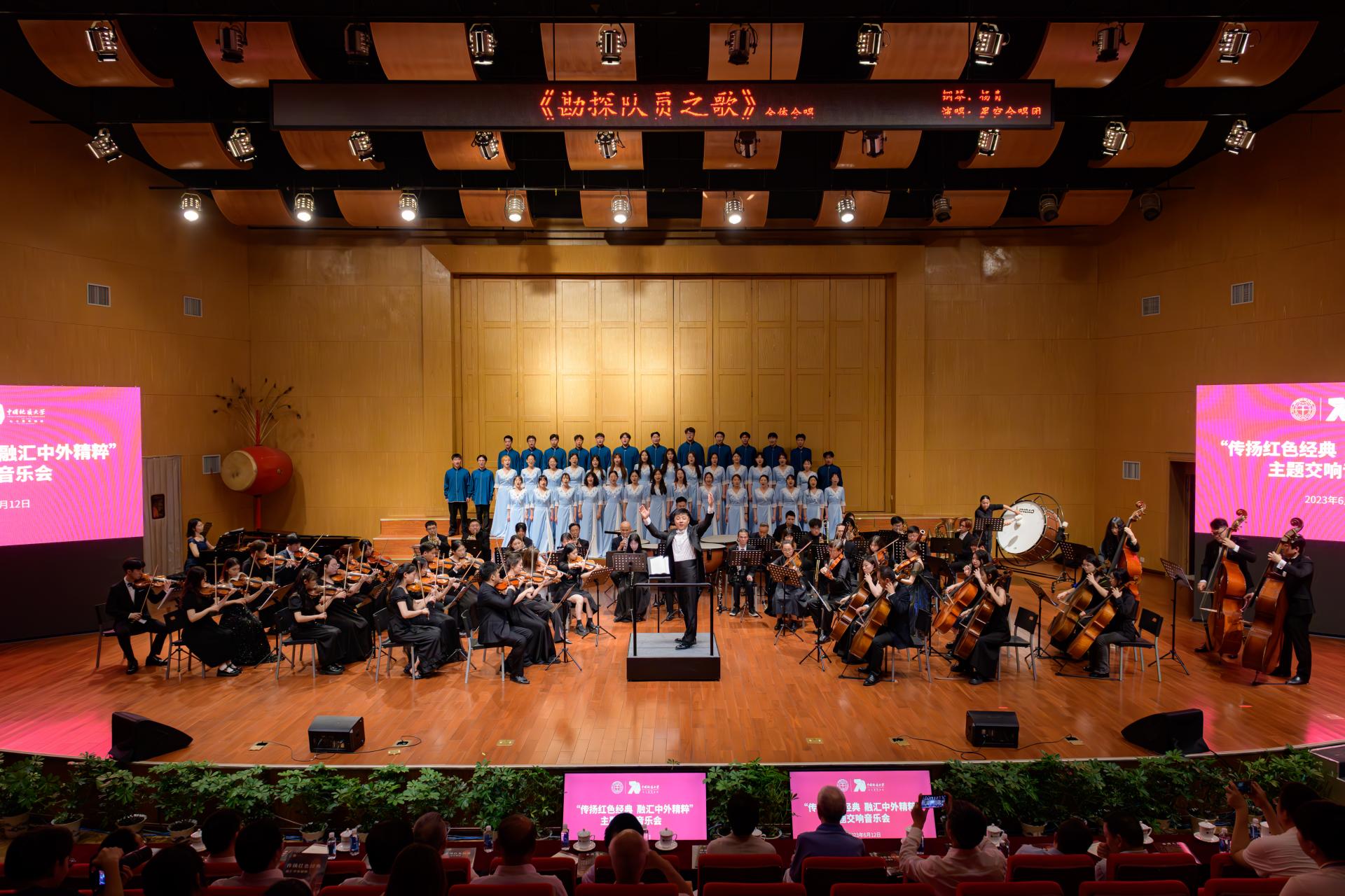 (转自地大新闻网)(通讯员 晋曦 王凯平 摄影 程璜鑫)6月12日,我校“传扬红色经典 融汇中外精粹”70周年校庆专题交响音乐会在南望山校区北区音乐厅举行。一曲激昂高亢的《红旗颂》拉开了音乐会的序幕。
