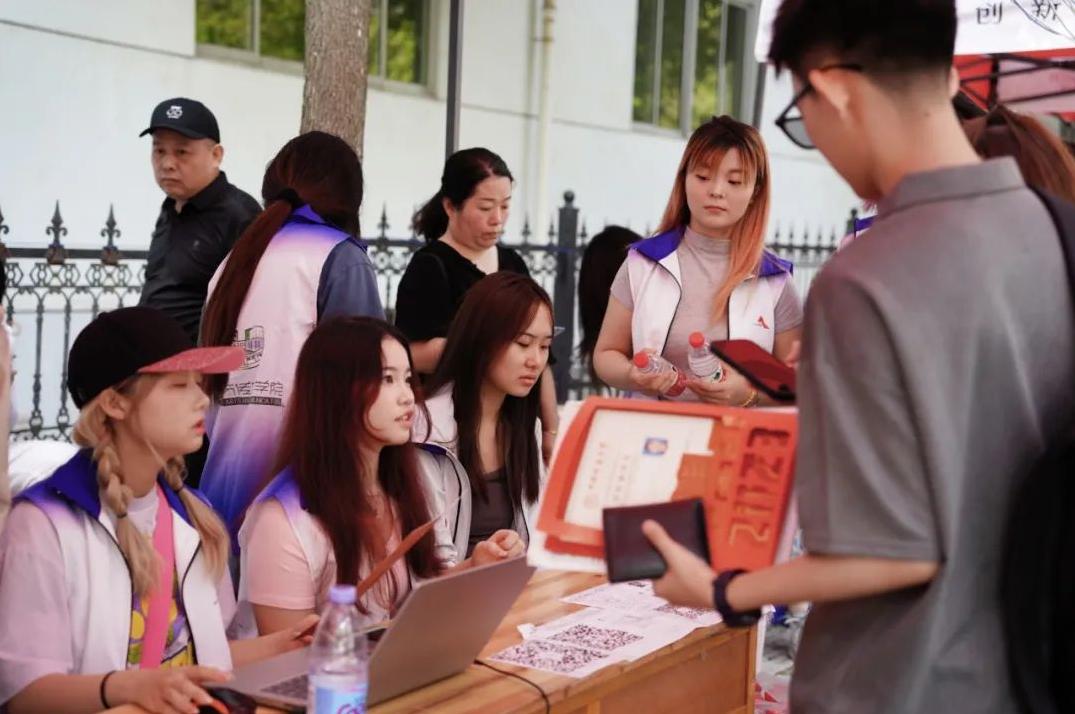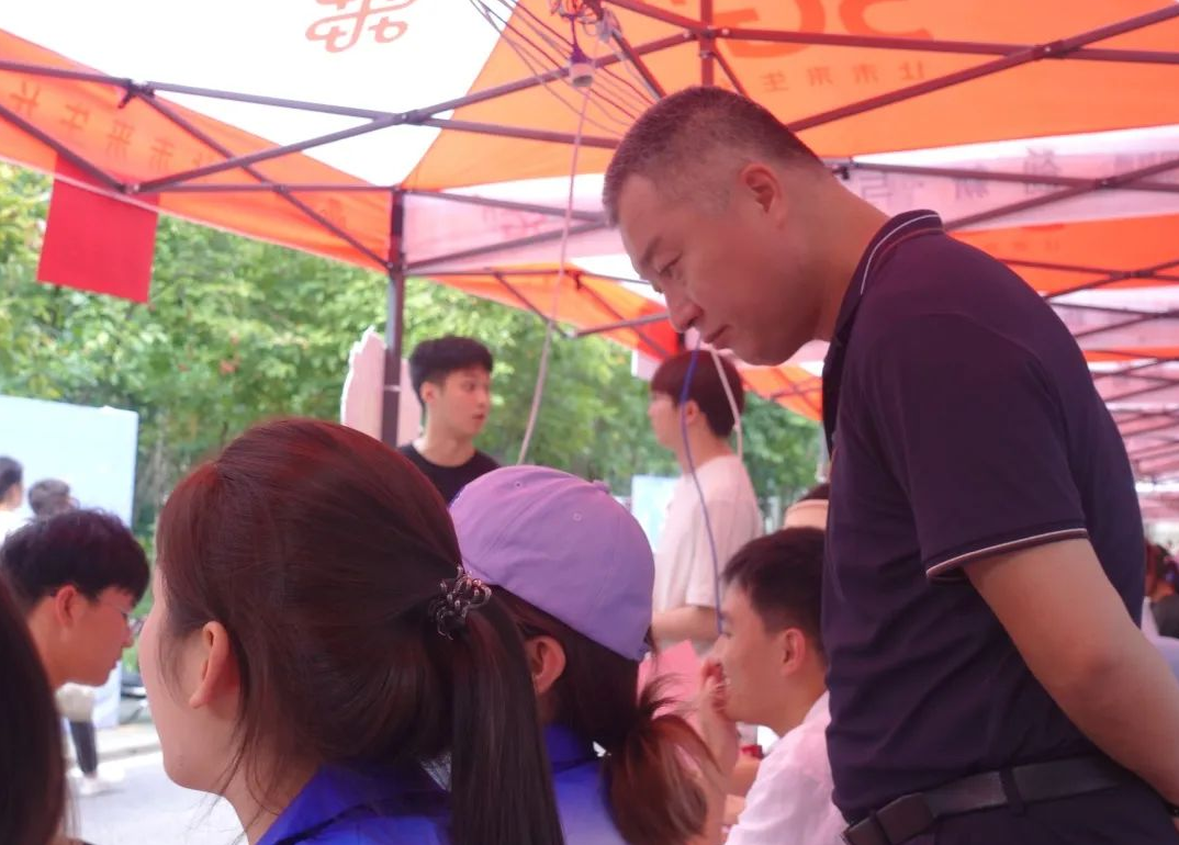 ”的牌子引导着新生去到迎新摊位,随后在老师们的协助下完成学籍信息录入以及个人资料的收集等,并耐心回复了家长们有关在校学习和生活的各类疑问。