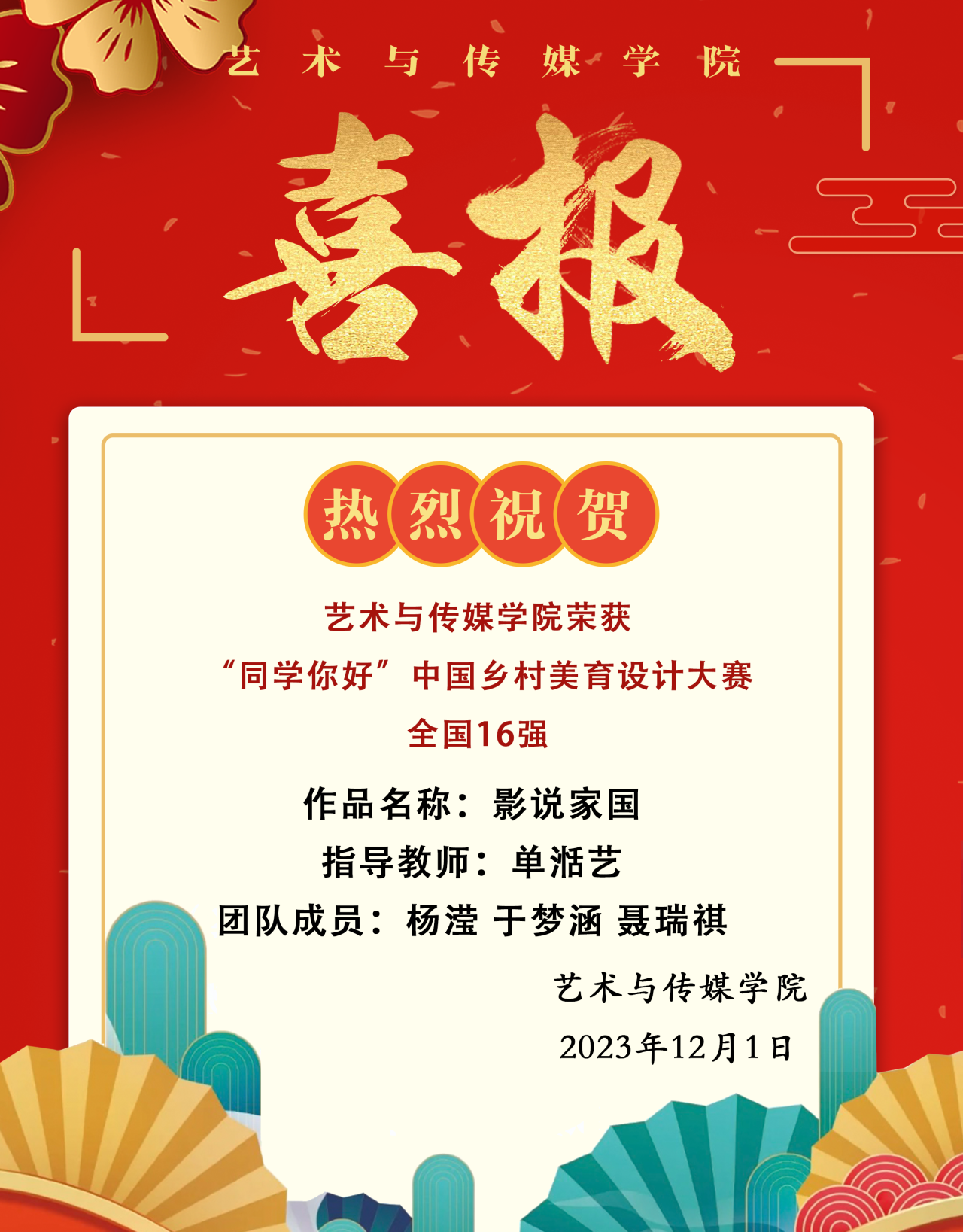 喜报!热烈祝贺好色tv 荣获“同学你好”中国乡村美育设计大赛全国16强!