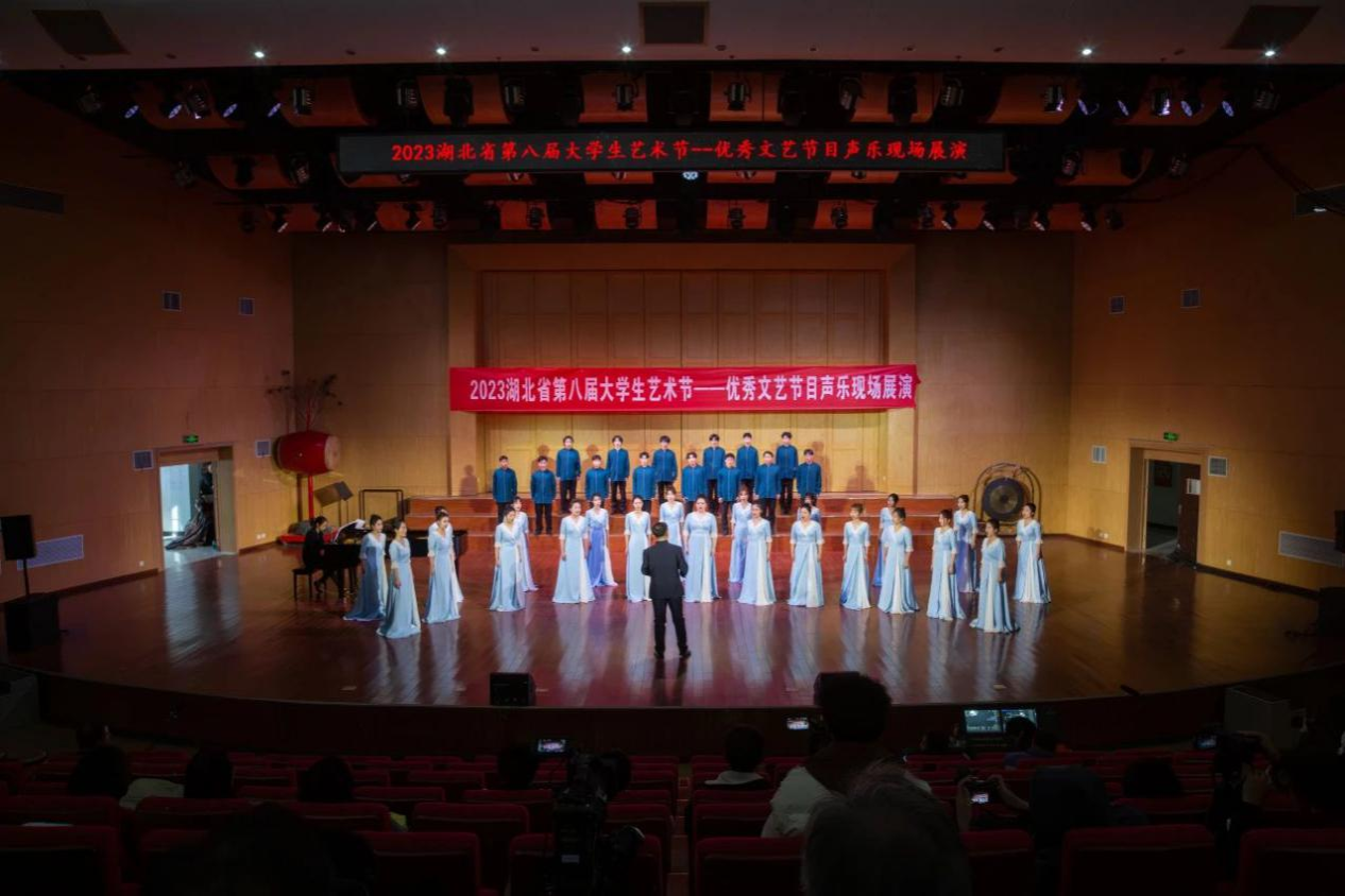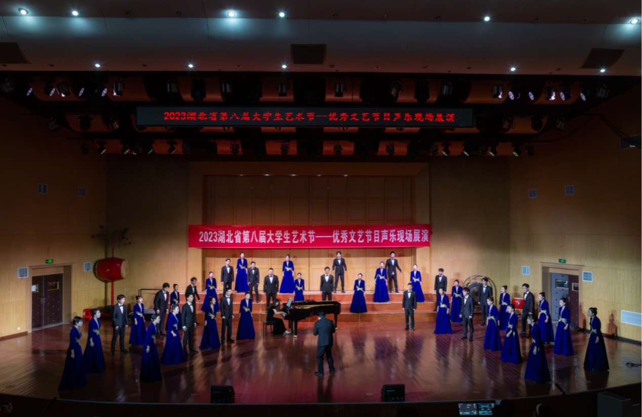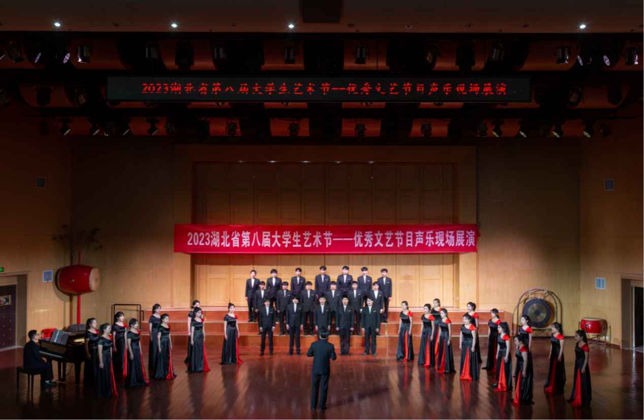 (通讯员:单湉艺、曾戈晖)由湖北省教育厅主办、中国地质大学(武汉)承办,以“厚植家国情怀,涵养进取品格”为主题的湖北省第八届大学生艺术节优秀文艺节目声乐现场展演于2023年12月7日至9日在中国地质大学(武汉)北区音乐厅举办。