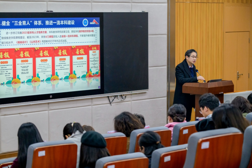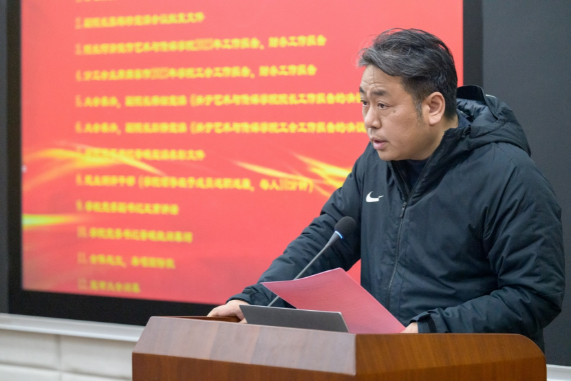 的工作表示肯定。他指出,过去一年,学院新一届领导班子敢于正视问题、勇于担当作为,聚焦立德树人主责主业、努力推动高质量发展,党建思政工作特色鲜明,导学团队建设成效显著,美育和社会实践工作亮点纷呈。就做好下一阶段有关工作,他提出4点要求,一是要抓党建、重基层、强业务、提士气,重点是要围绕落实立德树人根本任务纵深推进党建与业务“一融双高”,特别是要在研究生导学团队建设上持续发力;二是要扬优势、做贡献、强美育、铸新人,重点要聚焦探索构建独具特色的美育工作新范式作文章,为“五育”并举贡献艺媒力量;三是要搭平台、引人才、强队伍、出成果,重点是要锚定有组织科研创新这一目标任务,以深度融入“流域环境与长江文化湖北省重点实验室(筹)”为契机,引育双管齐下、加强师资力量建设;四是要聚能量、弘正气、发声音、树品牌,重点是要深挖“艺”、“美”、“媒”资源富矿,讲好“艺术+党建”的时代故事。