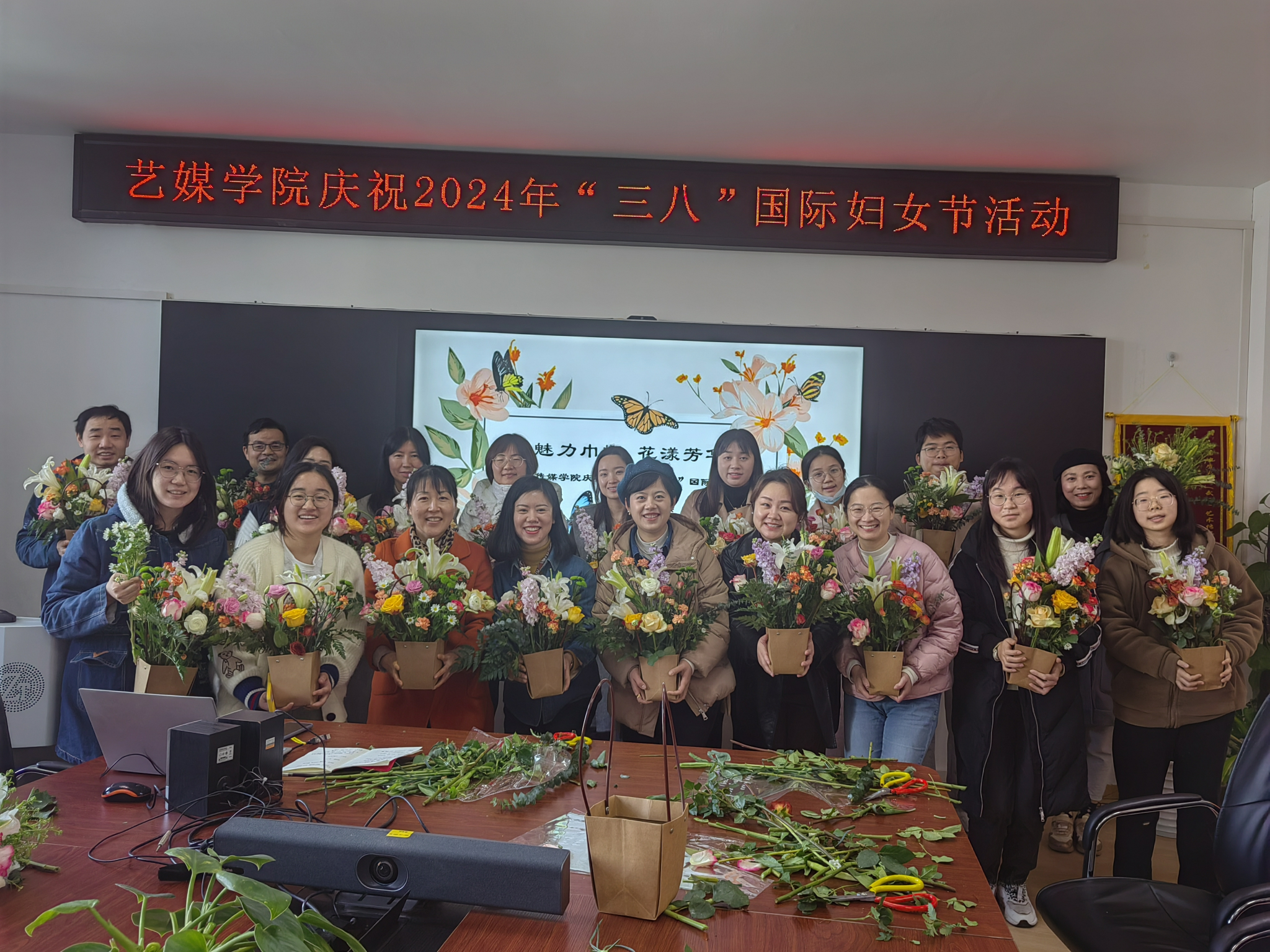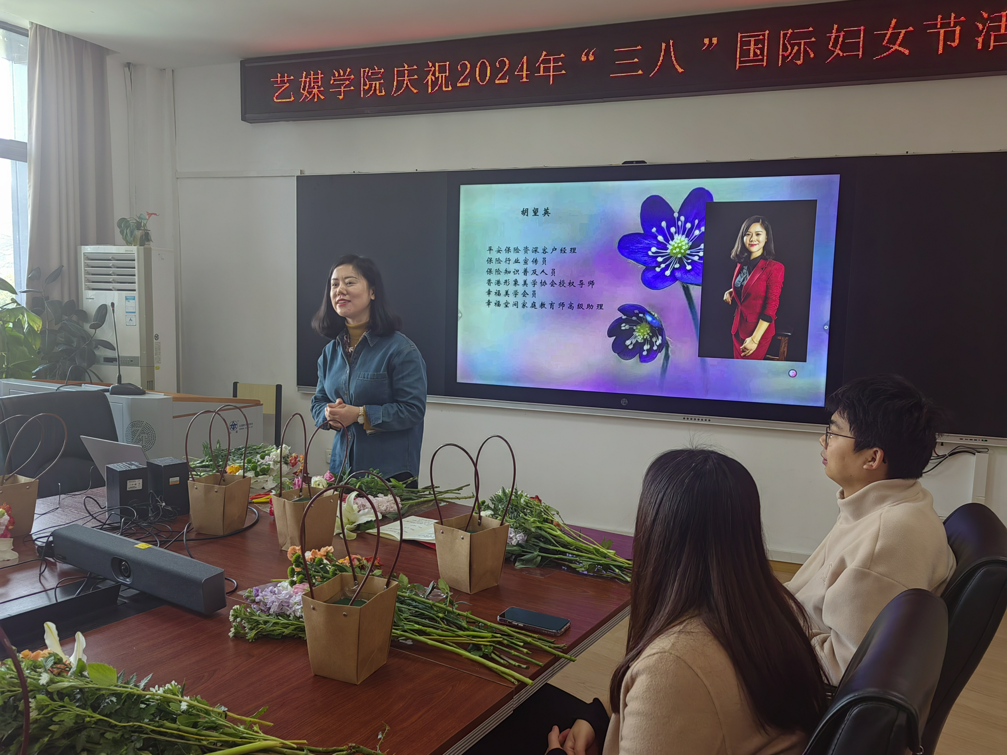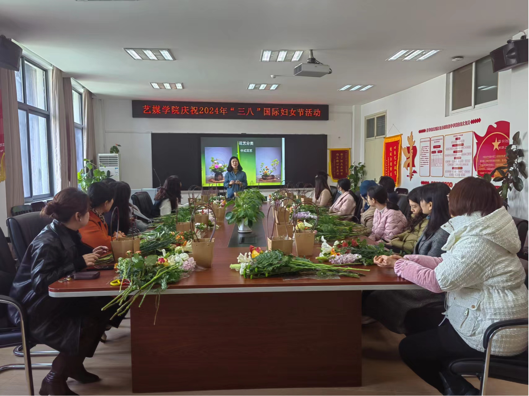 在我院1209会议室举办“魅力巾帼,花漾芳华”花艺沙龙,由学院工会主席周黎主持。