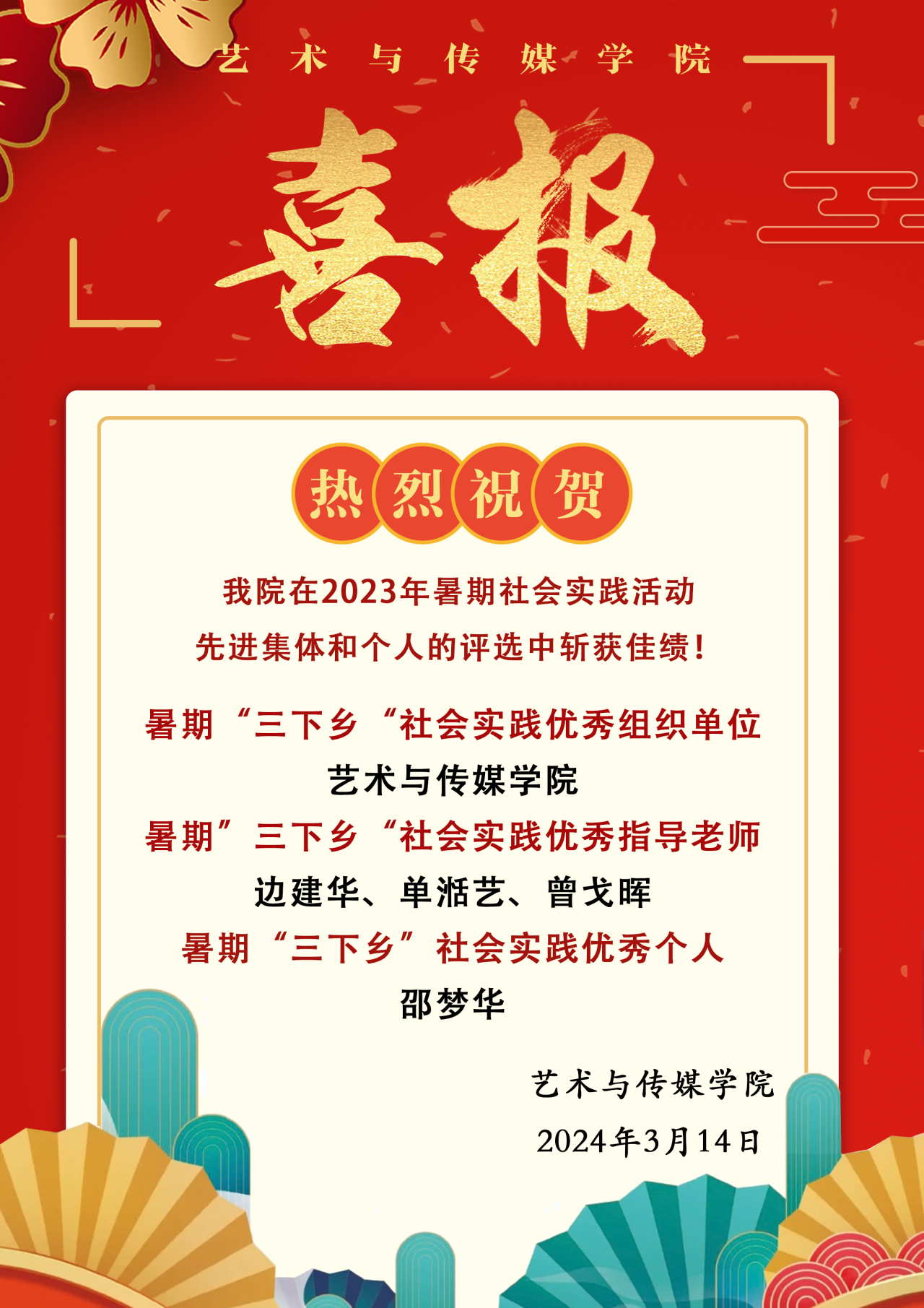 喜报 | 热烈祝贺我院在2023年暑期社会实践活动先进集体和个人的评选中斩获佳绩!