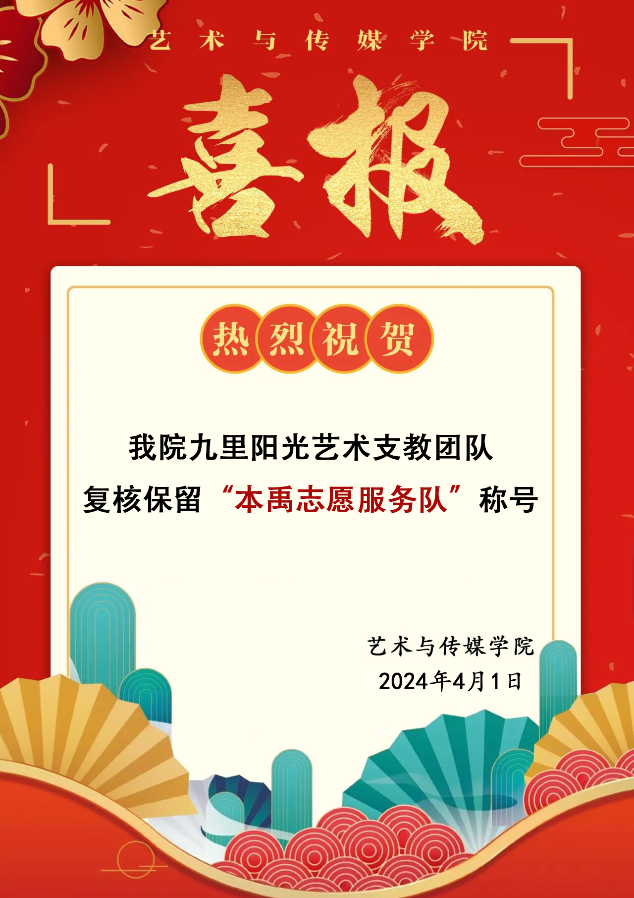 据悉,湖北省“本禹志愿服务队”以中国十大杰出青年、中国十大杰出志愿者徐本禹的名字命名,是一支以徐本禹为榜样,因徐本禹而聚集起来的校园志愿服务团队。2014年,为深刻贯彻落实习总书记给“本禹志愿服务队”重要回信精神,进一步弘扬志愿者精神及伟大抗疫精神,引导广大青年投身志愿服务,湖北共青团组织开展了“年度湖北省‘本禹志愿服务队’”创建活动。我院九里阳光艺术支教团队于2015年首次被授予湖北省“本禹志愿服务队”称号,并复核审评保留至今。