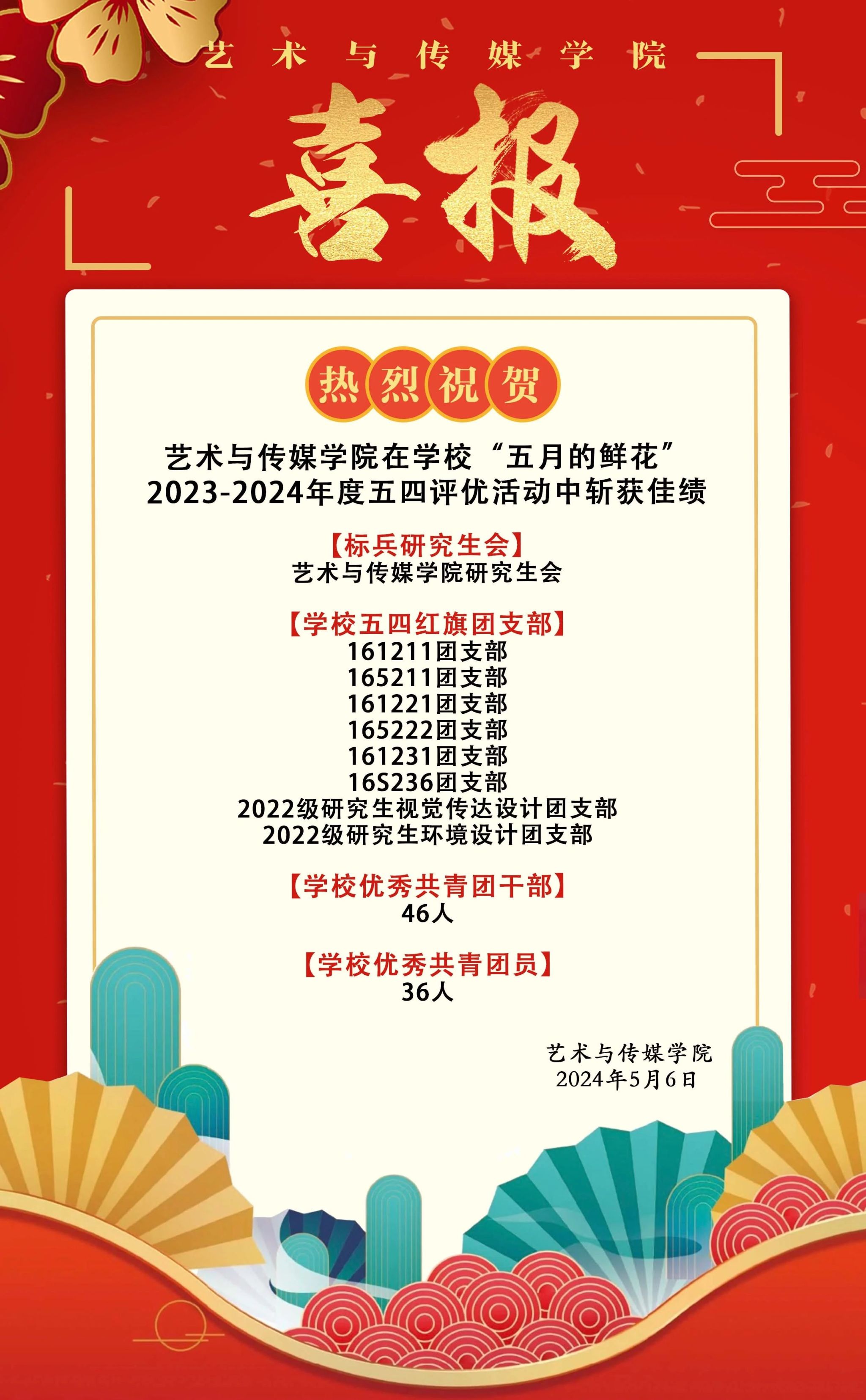 喜报!好色tv 在学校“五月的鲜花”2023-2024年度五四评优活动中斩获佳绩