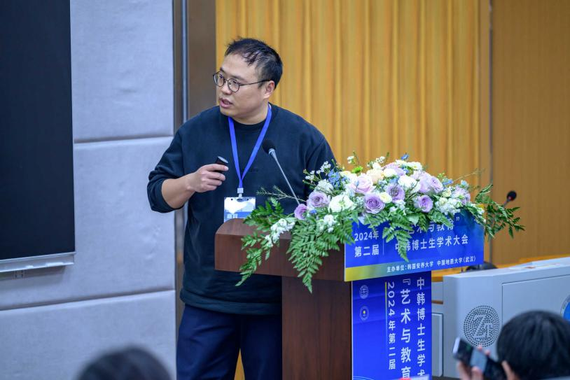 在博士生学术报告环节,来自清华大学、中央美术学院、中国艺术研究院、苏州大学、江南大学、南京艺术学院、澳门城市大学、韩国安养大学、韩国中央大学、韩国东明大学、中国地质大学(武汉)等高校的24位青年学者围绕六个学术板块进行主旨演讲。第一场“AI时代”板块由清华大学贾玺增教授主持、第二场“历史”板块由《美术》杂志社吴端涛老师主持、第三场“设计”板块由华南理工大学高占盈教授主持、第四场“艺术”板块由青岛大学张成义教授主持、第五场“教育”板块由韩国安养大学于琳教授主持、第六场“融汇”板块由湖北美术学院肖世孟教授主持。来自不同高校的专家和青年学者,围绕“艺术与教育”议题进行了深度交流。