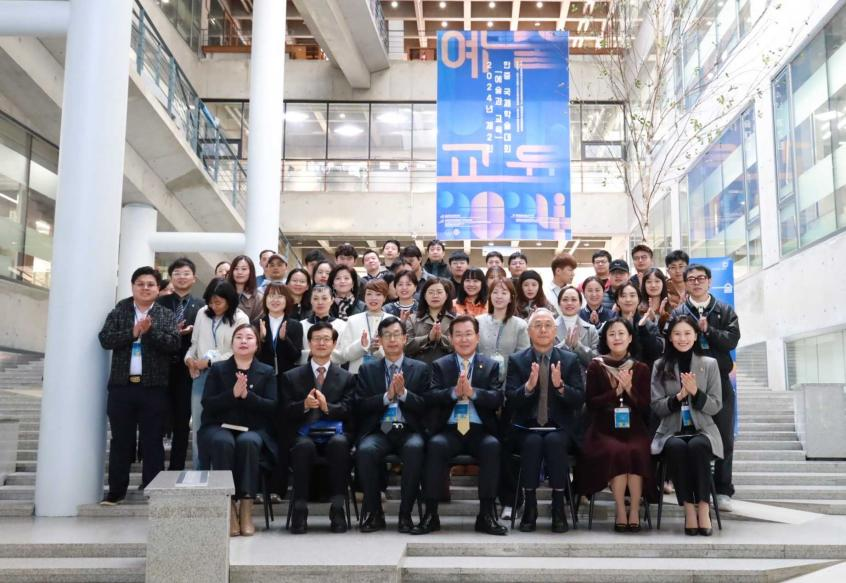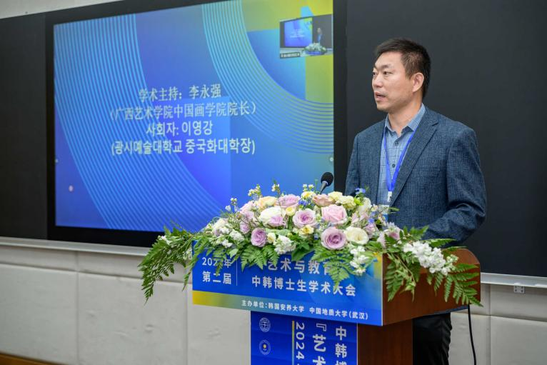1104学术报告厅和韩国安养大学美丽领导馆4楼会议厅线下会场共同举办“2024年第二届中韩博士生学术大会”。本届会议主题为“艺术与教育”,青年学者们围绕“AI时代”“历史”“艺术”“设计”“教育”“融汇”板块开展学术交流。