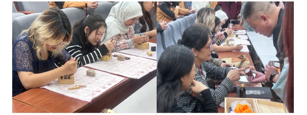 在篆刻体验环节,宋教授为大家准备了印章石材、刻刀和印稿,指导大家动手体验篆刻艺术的全过程。在一刀一线的篆刻过程中,师生们不仅锻炼了专注力和耐心,也完成了属于自己的印章作品,深刻体会到了篆刻艺术的乐趣与价值。