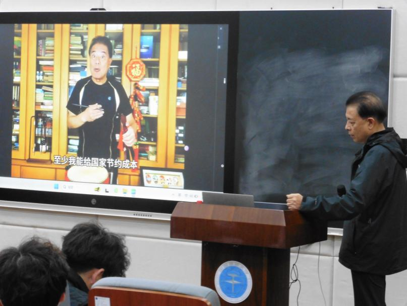 陆鸣先生认为,武汉方言不仅是沟通的工具,更是生活方式与习惯的体现,学习武汉方言能够增强人们的身份认同与归属感。他详细解读了武汉方言中充满地方色彩的形容词以及一些特殊词汇的来历,如“打”“搞”“货”“到”等字的用法,用幽默风趣的语言,让同学们在轻松愉快的氛围中学习到了丰富的方言知识,引得现场笑声连连。此外,他还分享了春晚节目的幕后故事,让大家感受到了艺术背后的辛勤与汗水。
