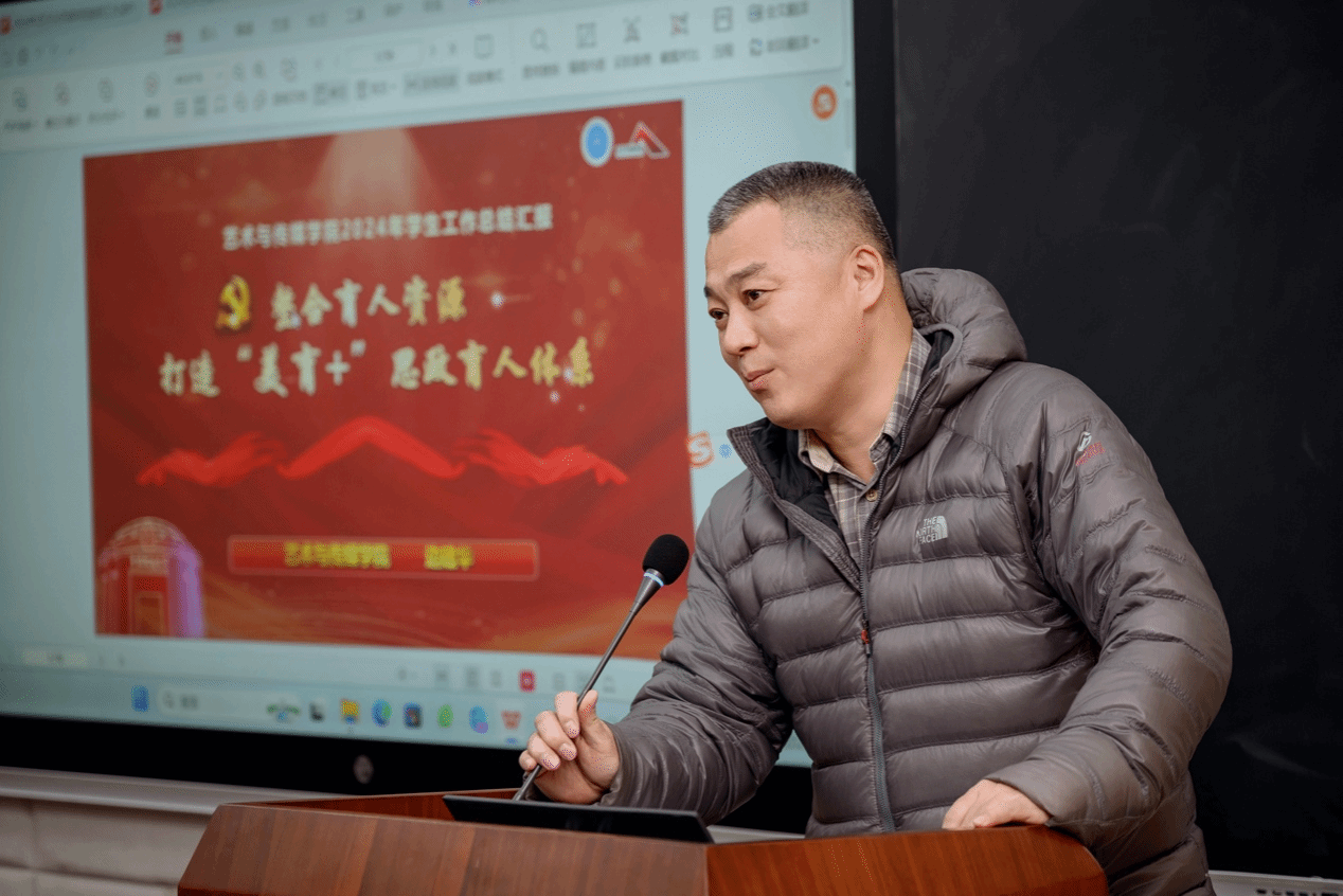 学院党委书记晋曦致闭幕辞并传达学校本科教育教学大会、寒假工作布置会等有关会议精神。