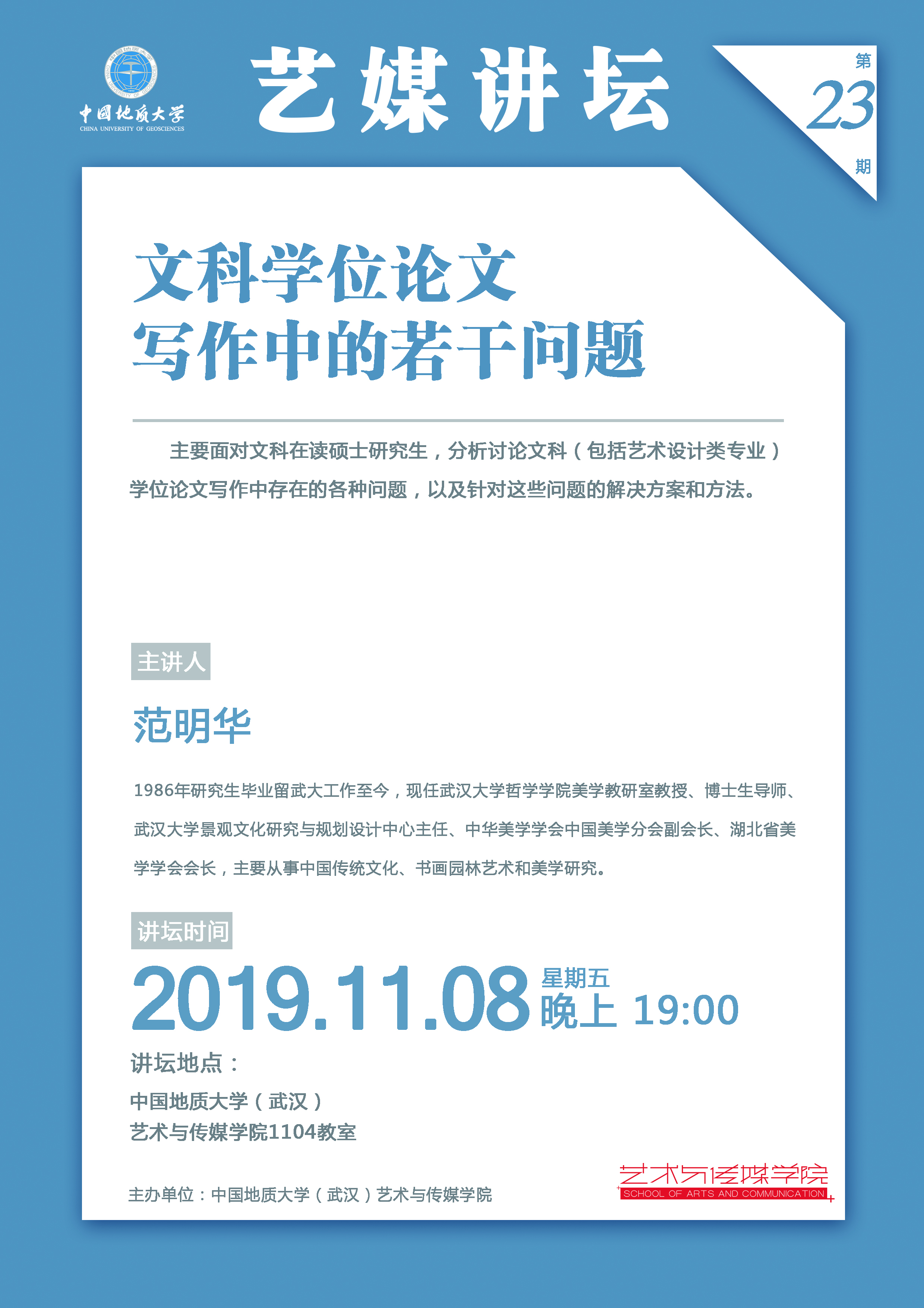 [2019年11月8日]艺媒讲坛(23期):武汉大学范明华教授讲座