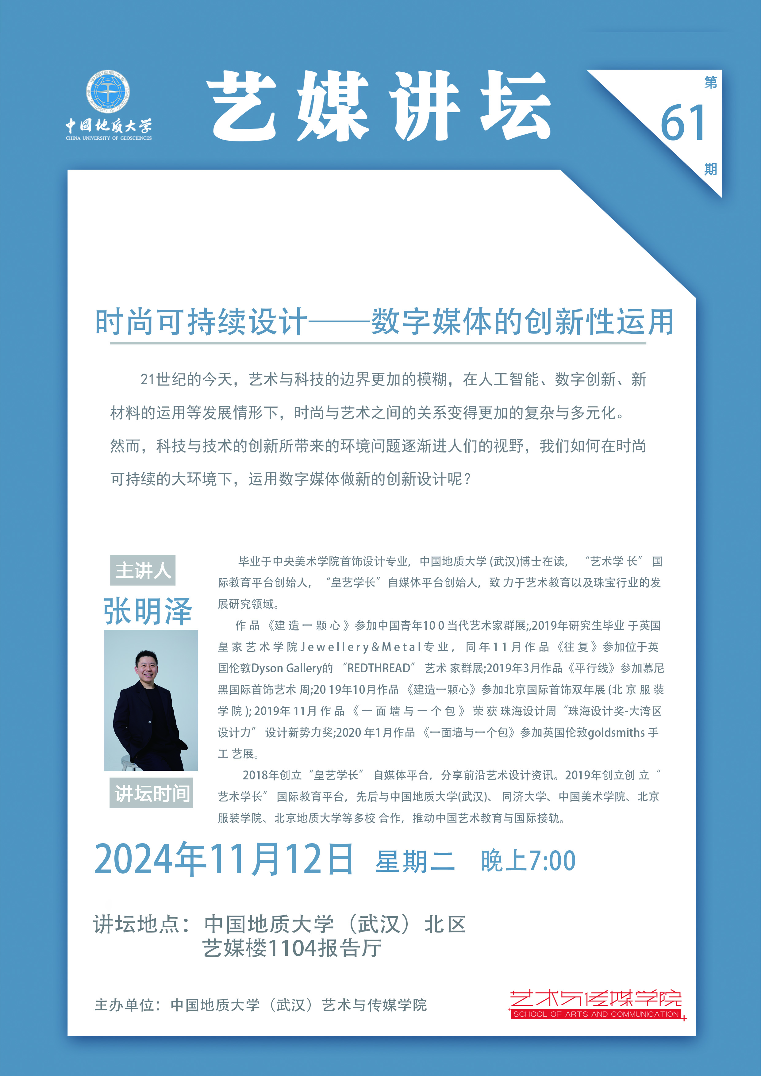 【2024年11月12日】学术讲座:中国地质大学(武汉)珠宝学院国际课程负责人张明泽老师讲座