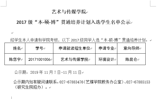 好色tv 2017级“本-硕-博”贯通培养计划入选学生名单公示
