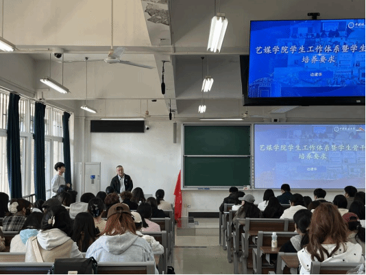 2025-2026学年学生骨干培训“弘艺班”开班仪式在北综楼102举行,学院党委书记冷再心,党委副书记边建华,团委书记单湉艺,学工组辅导员陈习良、曾戈晖、姜盛为,学工组全体兼职辅导员,学院分团委、学生会、研究生会、各班班委及网格化管理员全体学生骨干参加培训,本次培训由学院团委书记单湉艺主持。