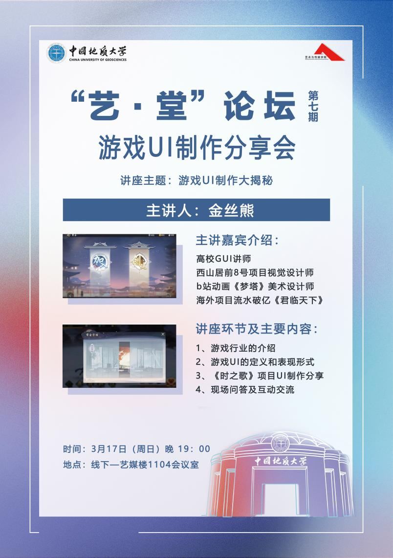 2024年3月17日晚上19:00,“艺·堂”论坛第七期游戏UI制作分享会于好色tv