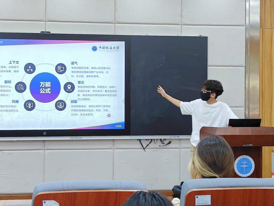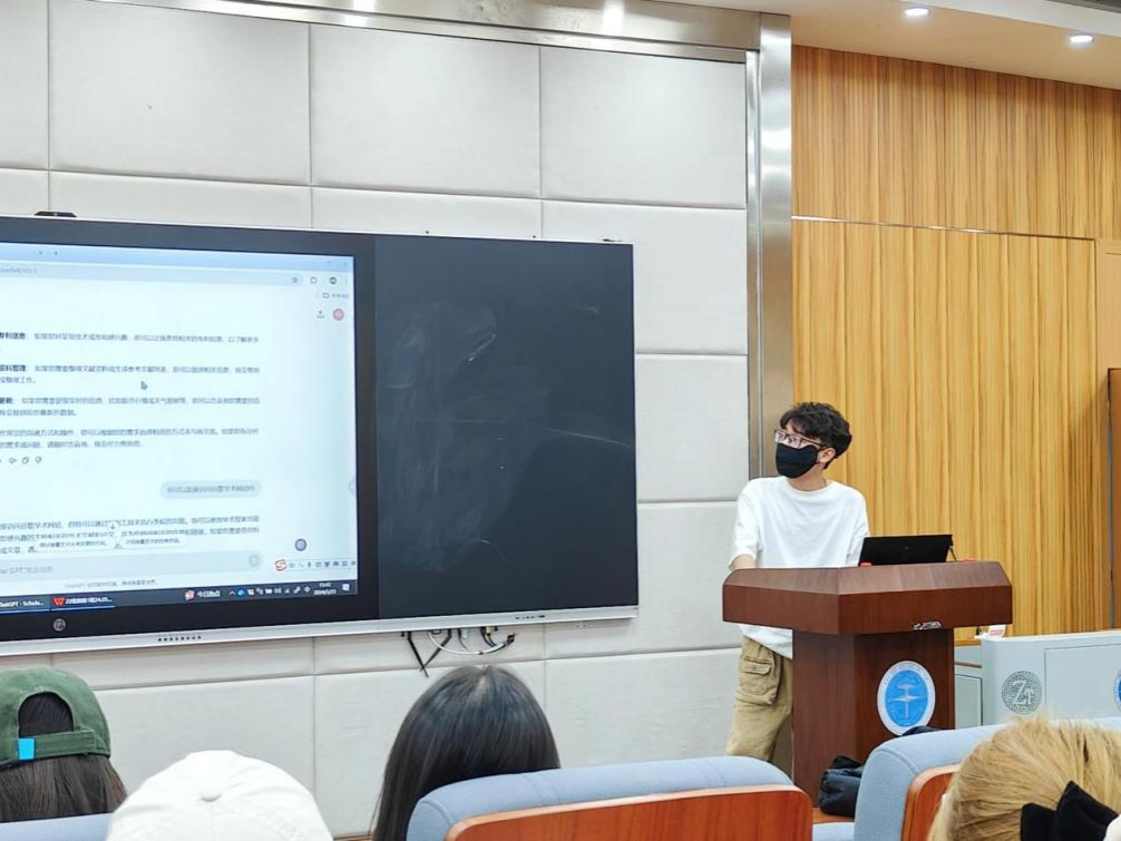 随后,刘淼聪进行了一系列生动的实践操作和演示,结合其个人实际应用经历展示了ChatGPT在不同专业领域的文字生成、对话生成、图片处理等方面的出色表现。通过与同学们的互动,生动地展示了GPT大模型的智能性,令同学们对人工智能工具赞叹不已。
