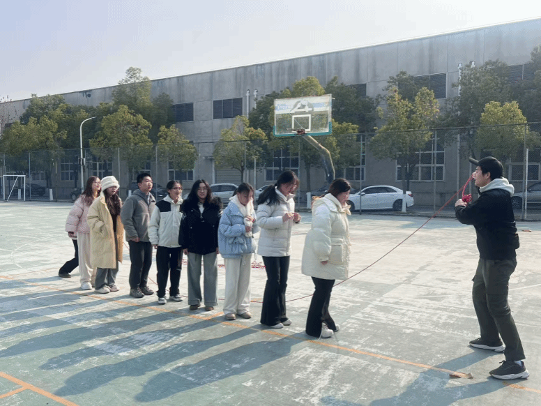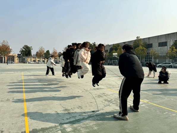 比赛当天,参赛队员们陆续到达场地,原本空旷的篮球场逐渐变得热闹非凡。各班级队伍迅速集结,有序地进行热身活动。尽管热身过程中出现了一些困难,如熟悉队形、调整间距、掌握节奏等,但同学们并未气馁,每一次绊绳都是对技巧的一次磨练。