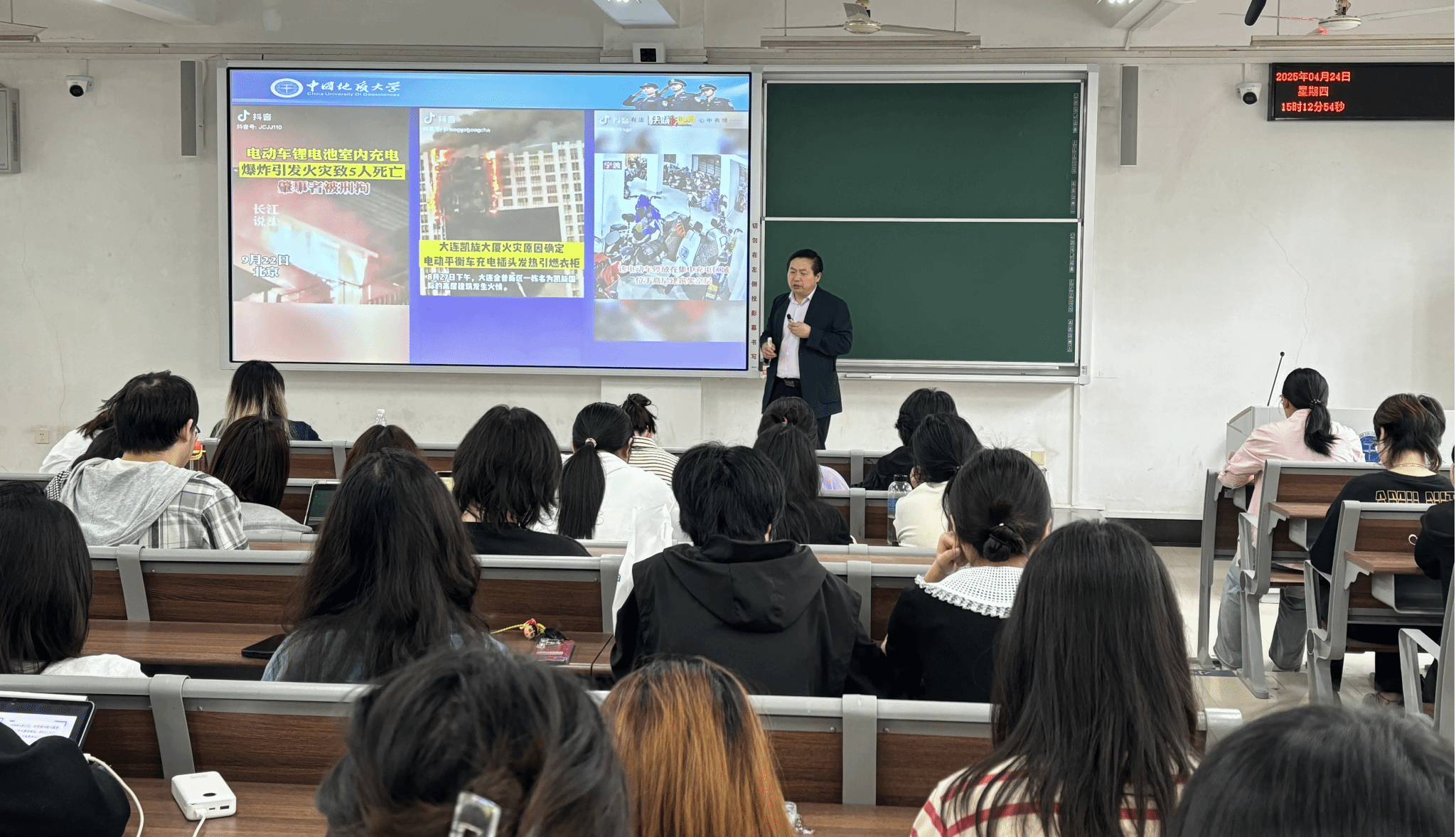 以“电动车消防安全专项教育”为主题,邀请安全保卫部的魏老师对学院学生骨干进行专项培训。