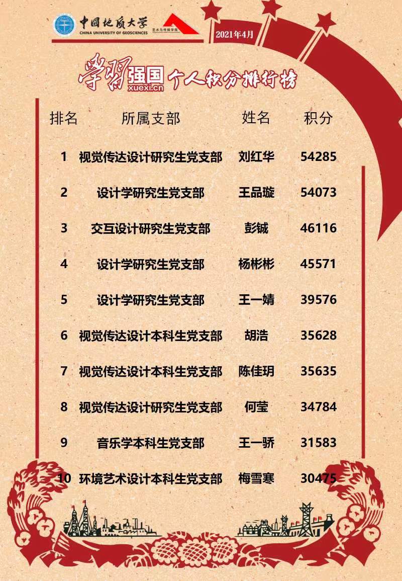 党建办公室党员考评部通过“四月学习强国积分赛”,组织本硕10个学生党支部359名党员和积极分子,完成347905个学习积分,人均学习970分,有力带动好色tv