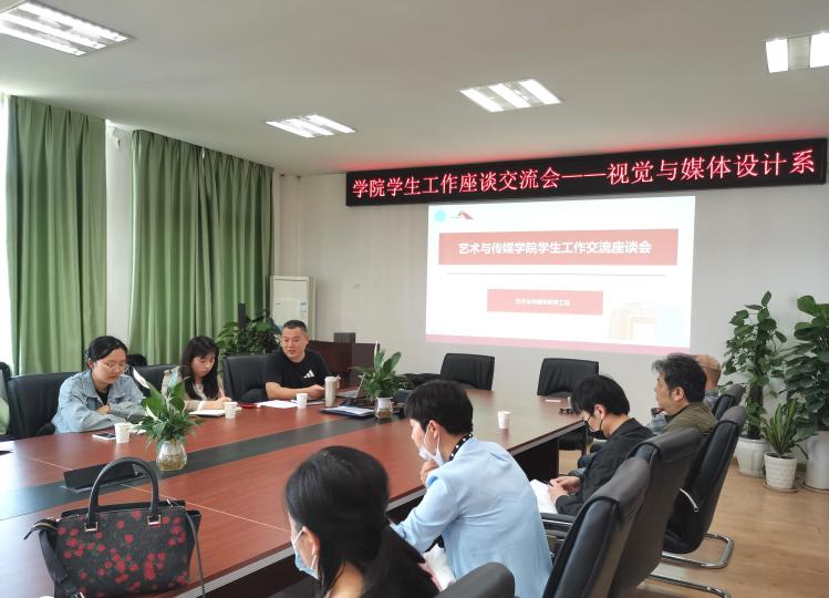 学生工作座谈交流会(视觉与媒体设计系)在艺媒楼1209会议室召开。学院副院长杨喆、党委副书记边建华、视觉与媒体设计系全体领导班子、班主任老师、学工组辅导员单湉艺和曾戈晖参加了座谈会。党委副书记边建华主持会议。