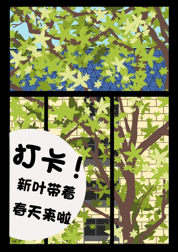 这个系列活力满满,作者带着对春天来临的欣喜,画下了这组图片。疫情下仍然有青春活力的大学生活,仍然有“春色满园关不住”的美景,不仅如此,还有和朋友们一起嬉闹的快乐!