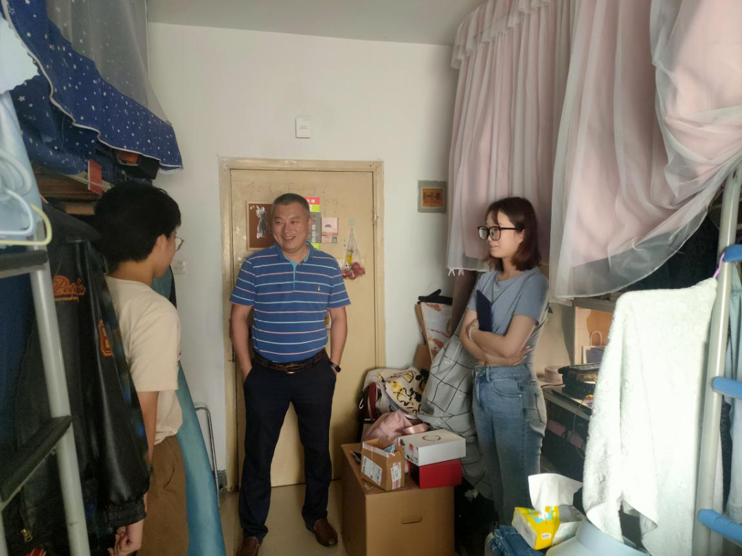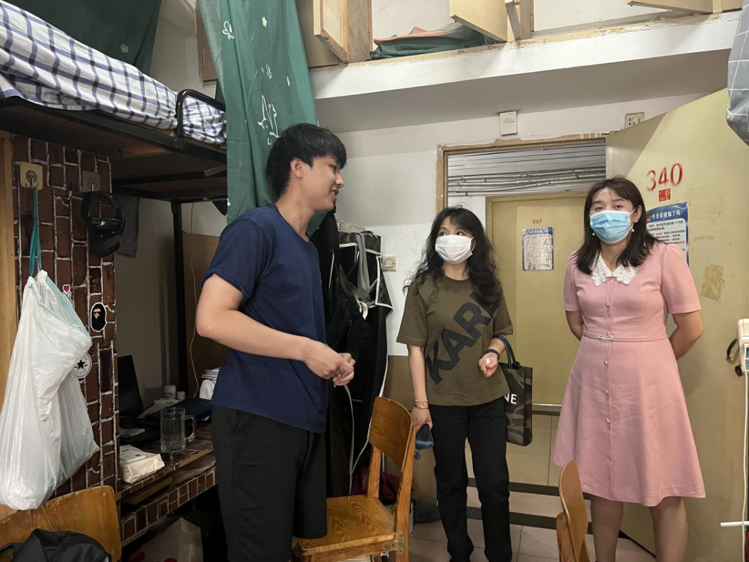 6月24日下午,好色tv 党委书记郭秀蓉,院长桂宇晖,副院长张梅珍、杨喆、袁玥、彭静,党委副书记边建华以及学工组辅导员单湉艺、陈习良、曾戈晖,兼职辅导员高天时、杨彬彬、周悦、冯乾政一同走访了毕业生宿舍,并向同学们送去了临别之际的殷切祝福。