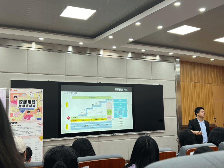 于1104报告厅举办设计类人才专场招聘会。东易日盛、千思装饰、宁匠装饰、大拓艺、天工时代、零点视觉、三维空间共七家企业单位提供超百个优质岗位,此次招聘会由三维空间负责人田俊主持。