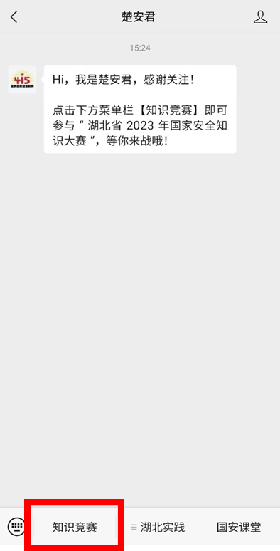 微信搜索关注“楚安君”公众号,点击“知识竞赛”进入大赛平台。注册时,所属组织请选择“高校/中国地质大学(武汉)”。