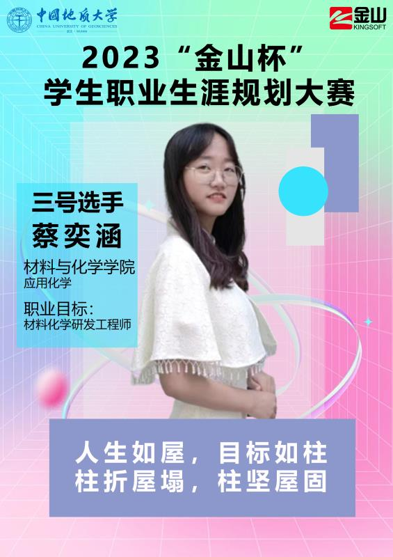 凭借着对结构化学产生兴趣,材料与化学学院2022级本科生蔡奕涵将料化学研发工程师作为职业目标。她认为自己未来会成为一名研究生,通过不断积累基础知识、加强实践能力来达到自己的理想职业目标,基于此蔡奕涵同学对自己的学习生涯制定了十分详细的规划,相信能够为成为高精尖的科研型人才打下坚实的学科基础。