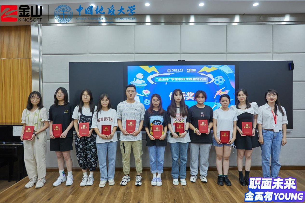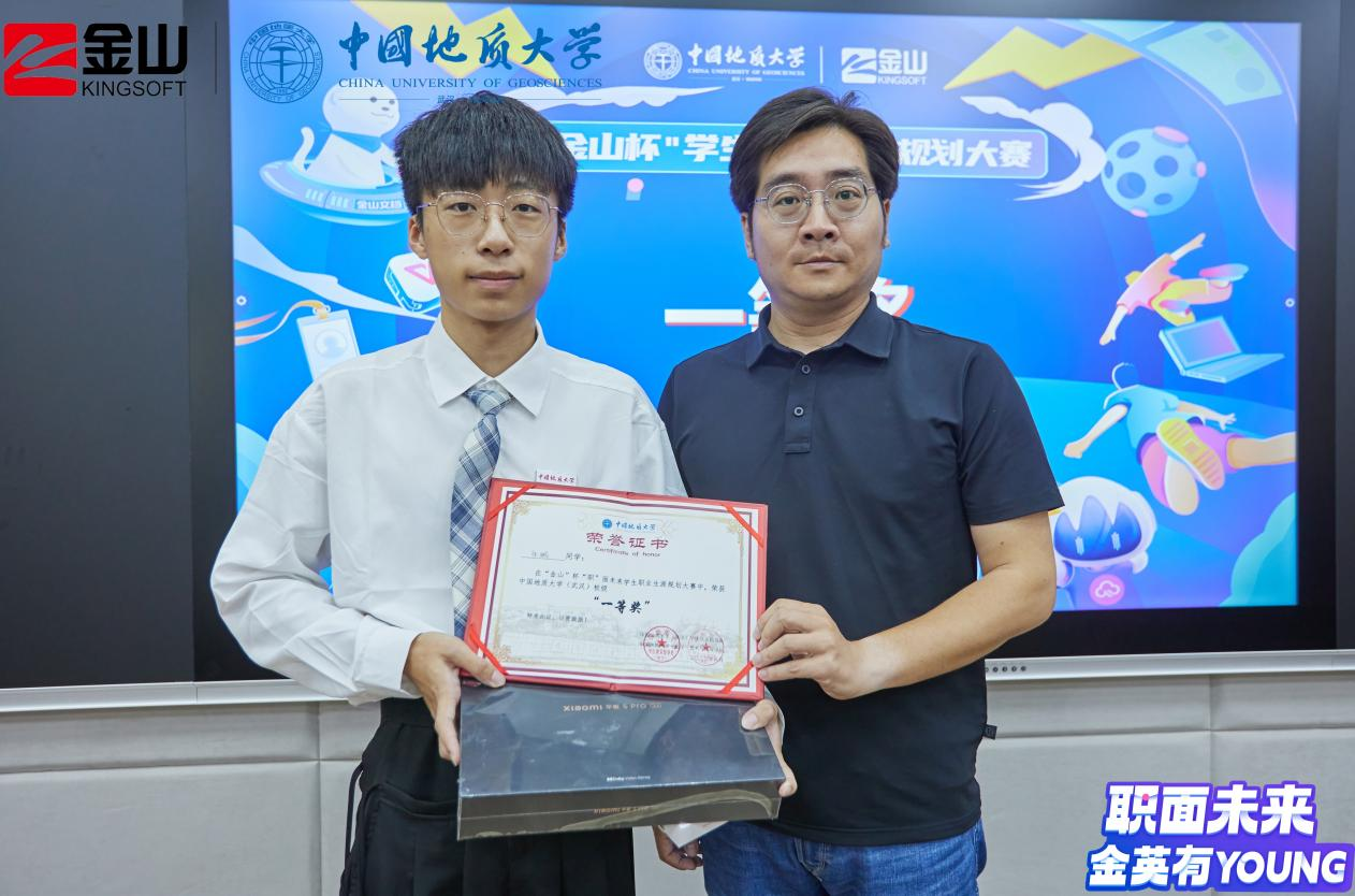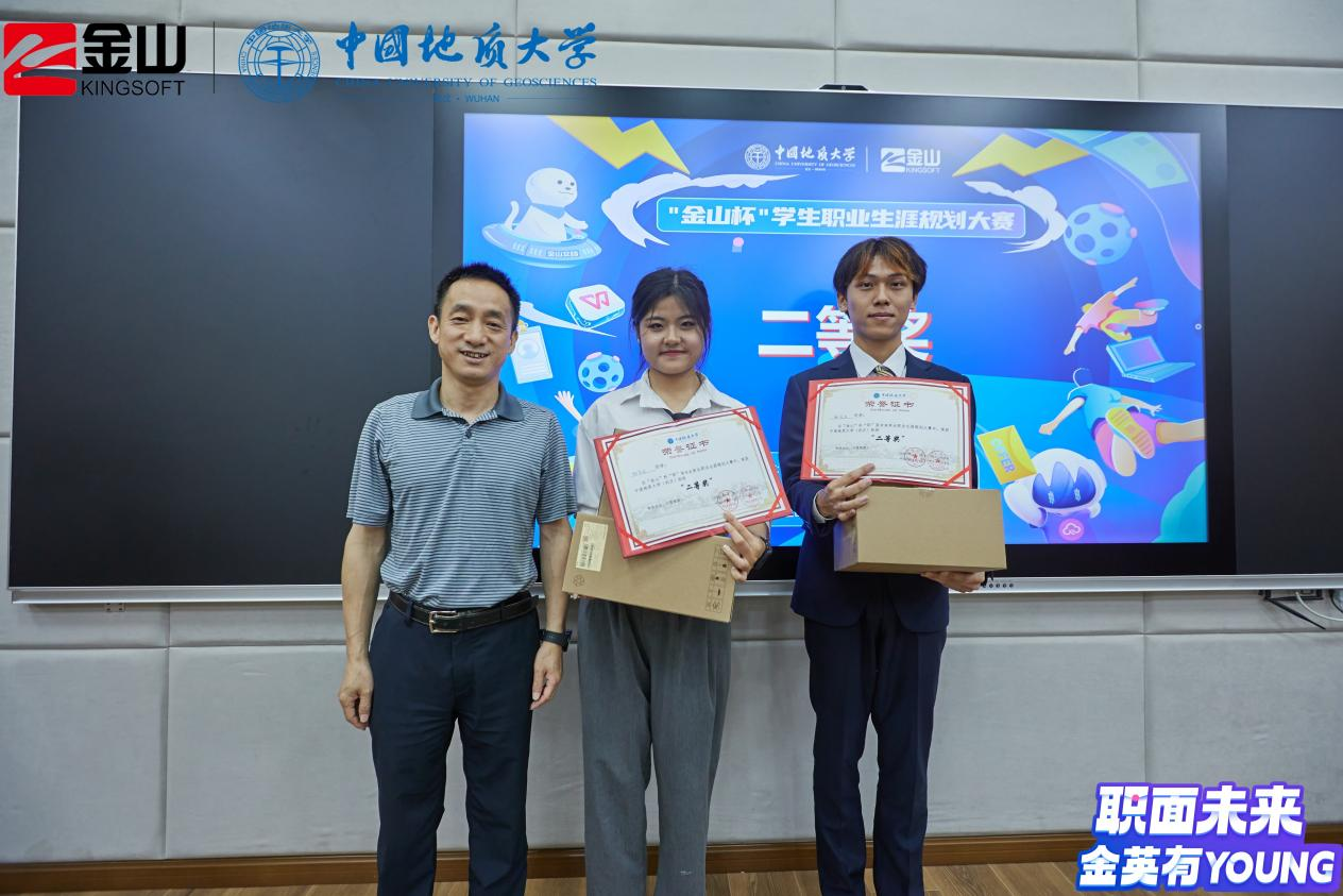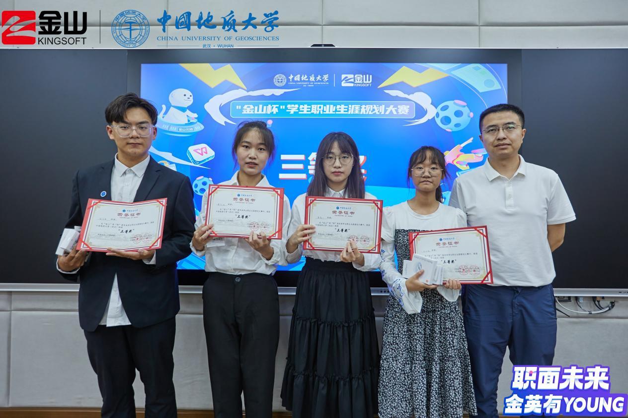 钱成果、材料与化学学院蔡奕涵、地理与信息工程学院桑童心、珠宝学院孙长恒获得三等奖(奖品为小米手环和小米小爱随身音响)。评委老师、嘉宾为选手颁发获奖证书与奖品,并合影留念。至此,中国地质大学(武汉)金山杯“职”面未来学生职业生涯规划大赛圆满结束。