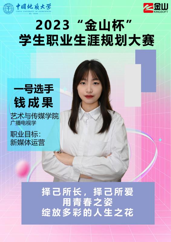的2022级本科生钱成果同学梦想成为一名新媒体运营,她通过对自己的兴趣性格分析、个人能力分析进行了自我剖析,同时对当前变化迅速的新媒体行业职业环境进行分析,契合自身兴趣找准了自己的职业定位,并从各个方面对自己未来的职业进行了长远的规划。