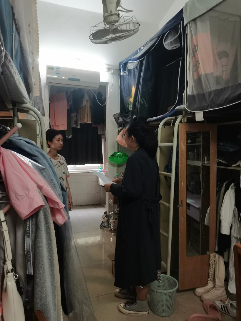 在走访宿舍过程中,边建华书记及各位辅导员老师为各位同学送上了节日祝福,并对各个寝室的安全隐患情况进行了相关排查,同时对学生假期计划进行了了解,提醒要离校的同学们在路途中要注意财产安全、交通安全,留校的同学们要注意用电安全,保持良好的生活作息,创建团结、友爱、健康的宿舍环境。