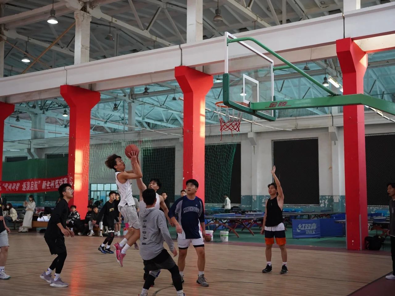 命中篮框,诠释着青春多彩